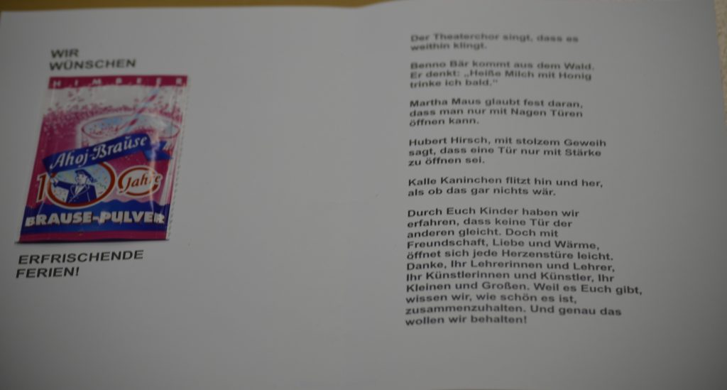Als Erinnerung erhielten alle Akteure und Gäste eine liebevoll gestaltete Karte.