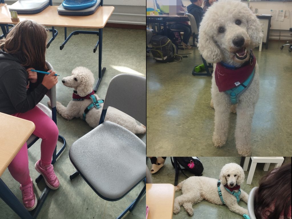 Inzwischen war Edda auch bereits aktiv im Unterricht im Einsatz: Gemeinsam mit Frau Thißen begleitete sie einzelne Stunden und unterstützte so gezielt in besonderen Lernsituationen. Ihre ruhige und freundliche Art trägt dabei zu einer angenehmen und konzentrierten Lernatmosphäre bei.