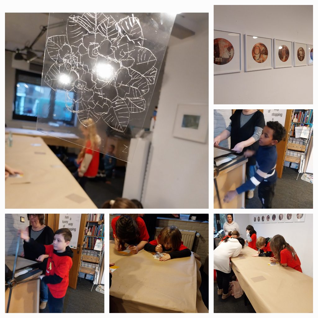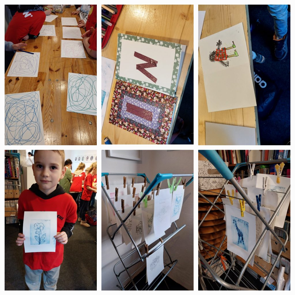 Sie durften eigene Bilder gestalten – durch Kratzen, Malen mit Ölfarben und das anschließende Pressen der Werke. Dabei lernten sie viele neue Techniken kennen und konnten ihr Wissen und Können erweitern.