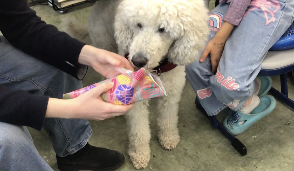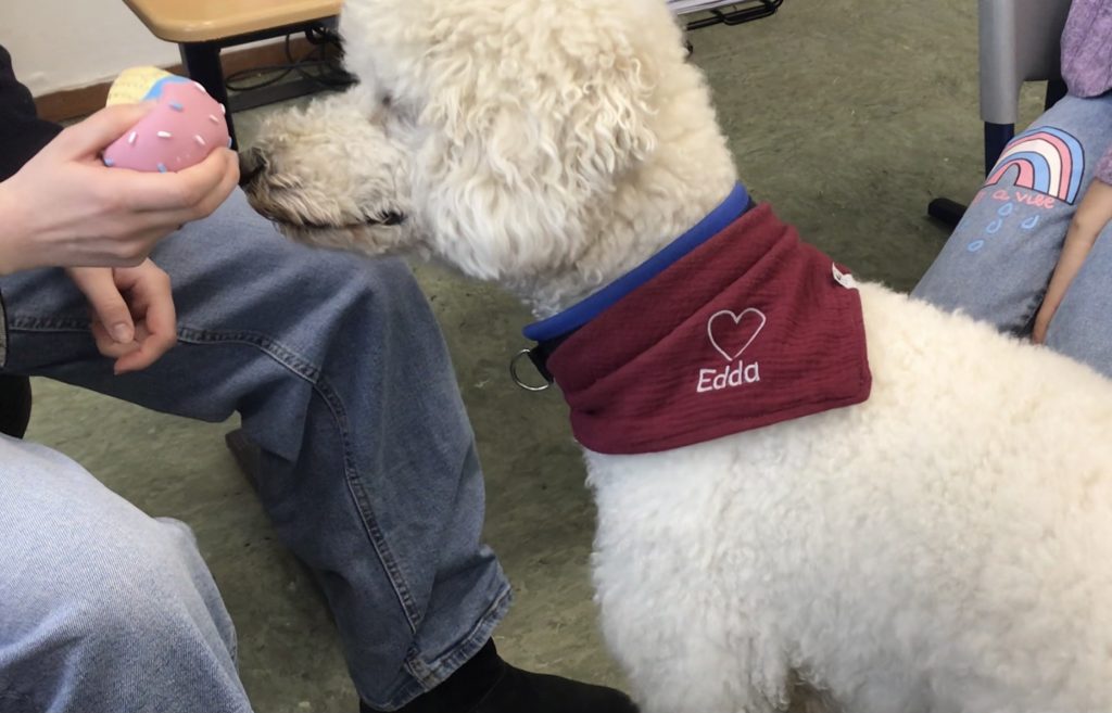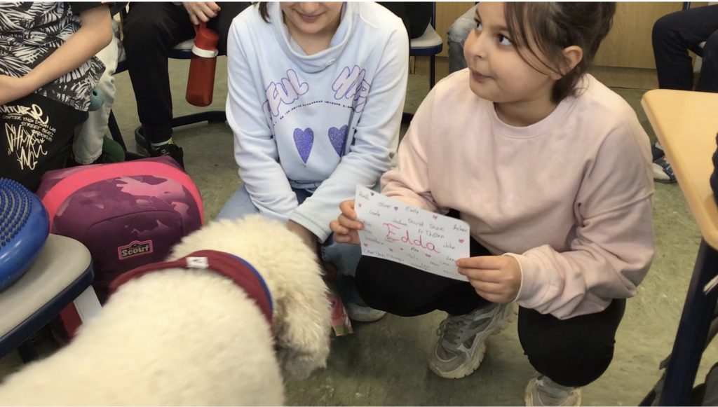 Heute gab es in der Klasse 4b einen besonderen Anlass: Unsere Schulhündin Edda hat Geburtstag. 🐾🎉