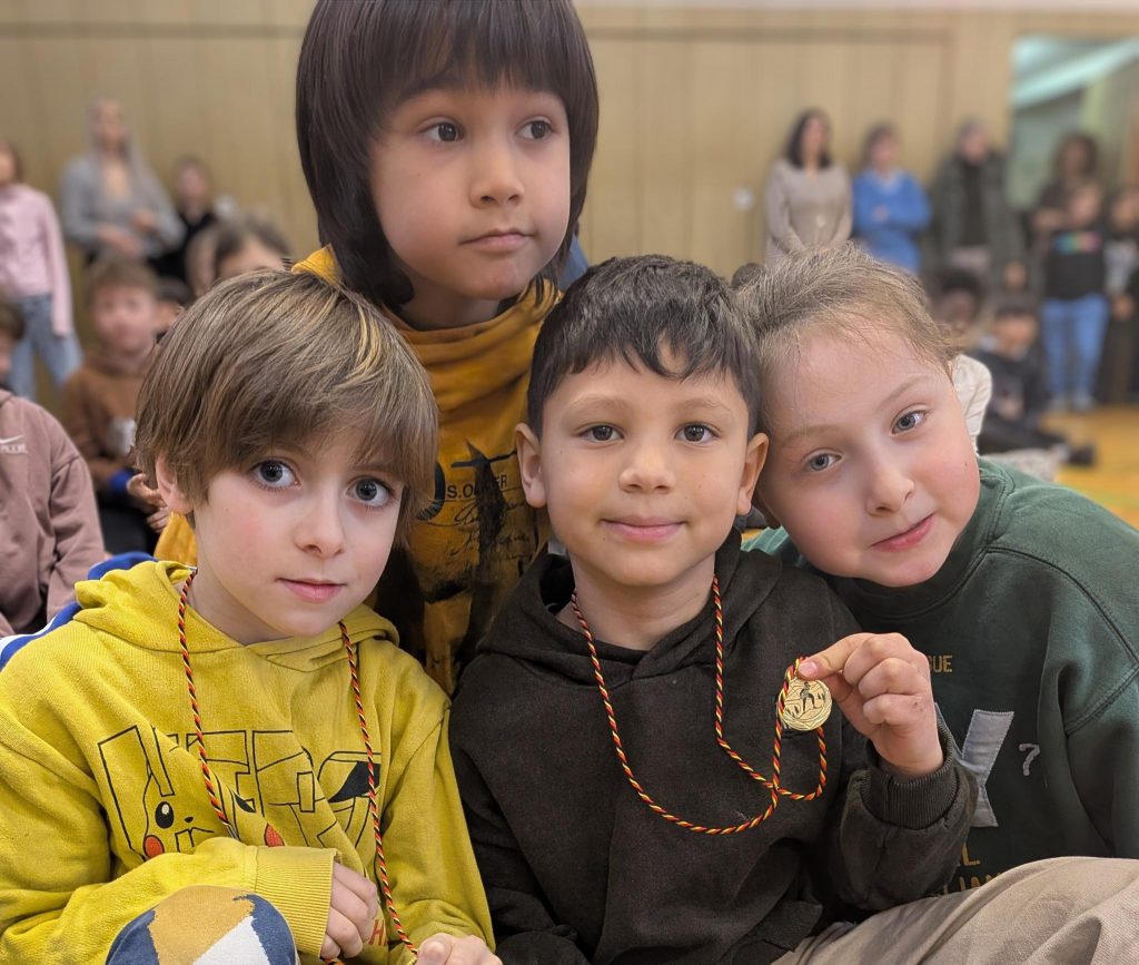 Heute feierten wir mit unseren Kindern eine besondere Winterolympiade, angelehnt an die Olympischen Winterspiele 2026. Mit viel Begeisterung, Teamgeist und sportlichem Ehrgeiz meisterten die Schülerinnen und Schüler acht abwechslungsreiche Stationen: Biathlon, Skifliegen, Shorttrack, Ski Alpin, Schneeball-Zielwurf, Curling, Bobfahren und Eishockey.
